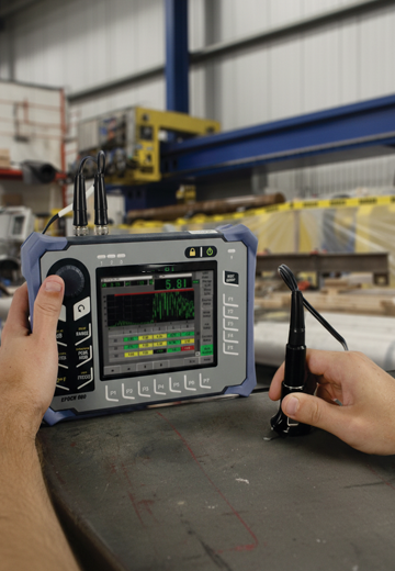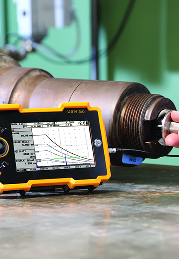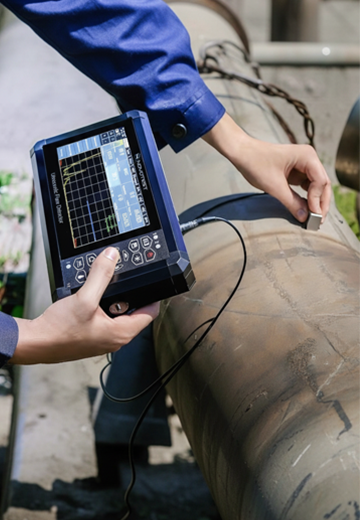 Measures wall thickness and monitors corrosion in pipes and vessels.